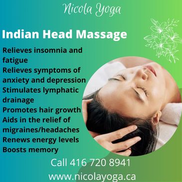 For Yoga tips, healthy recipes, and upcoming events. Following Ayurveda practice - massage of the head, neck, back including the shoulders, arms and face - helps to relieve headaches, seasonal allergies, aides sleep, and overall health and wellness. Tel 416 720 8941 Yoga, Indian Head Massage Reflexology, Hot Stones Massage, using authentic River Rock Basalt Stones, Aromatherapy Massage, Relaxation Massage, Cupping Massage, Cranial Sacral Therapy, Energy Healing, Reiki Master