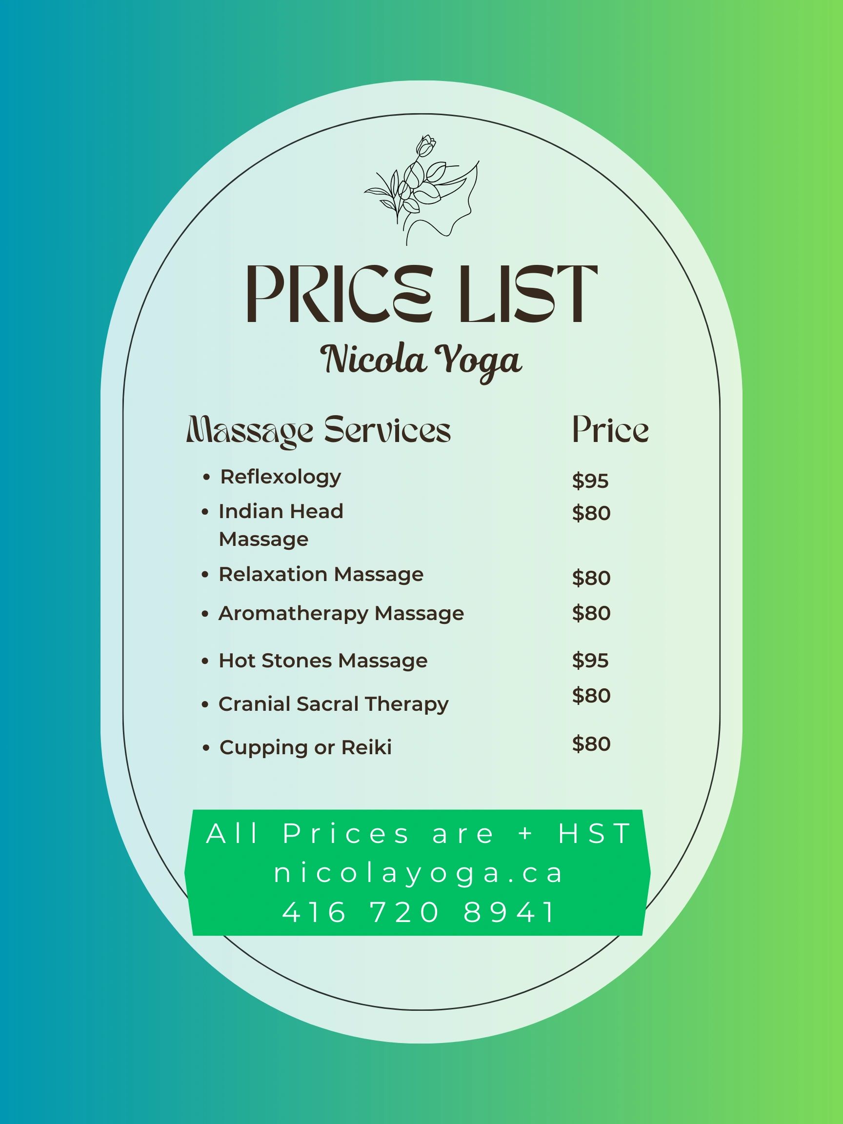 Finding peace, harmony and respect in all living things - Namaste - Nicola Yoga - Reflexology - Indian Head Massage, Basalt River Rock Hot Stones Massage, Aromatherapy Massage, Relaxation Massage, Cranial Sacral Therapy, Cupping Massage